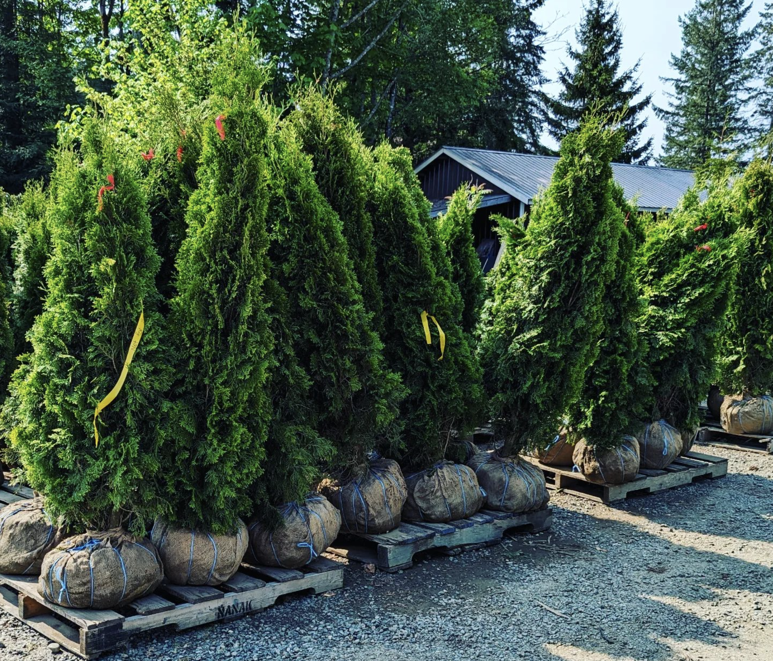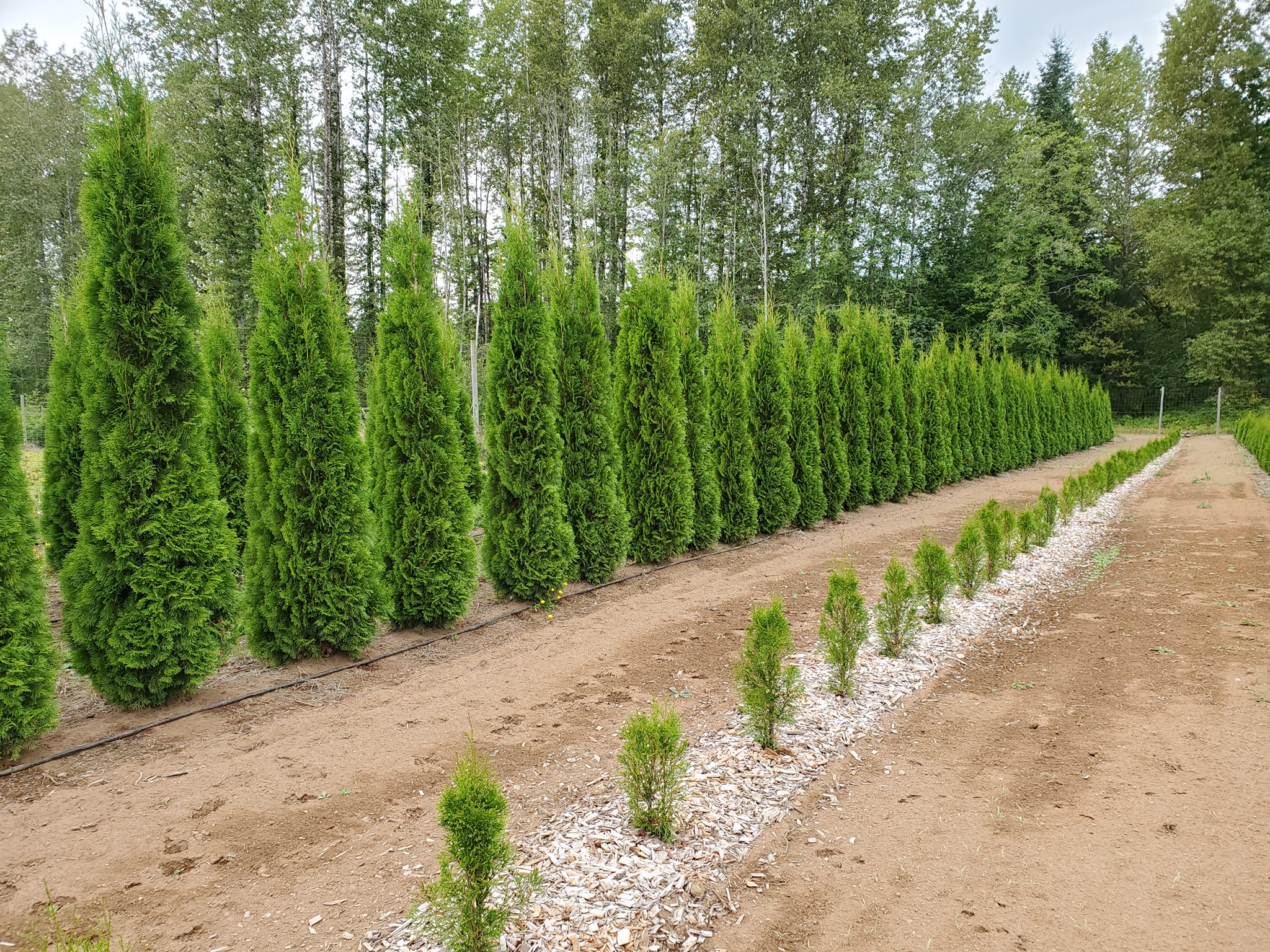 Choose from Emerald, Excelsa, Green Giant, Portuguese Laurel, Leylandii, Forever Goldy, Brandon and Giant Sequoia. Deciduous might include Styrax, Parrotia, Rubrum, Betula and Katsura.